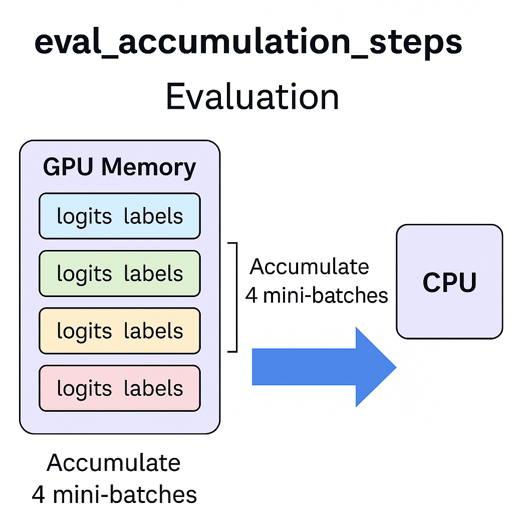 평가 시 모든 예측 결과를 GPU에 쌓아두지 않고 일정 간격으로 CPU로 이동시키는 방법입니다. 이 방법은 특히 평가 데이터셋이 크거나, 모델이 크고 GPU 메모리가 제한적일 때 유용합니다.