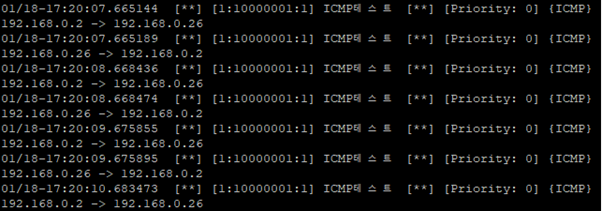 이제 시스템에 ping 을 보내면 아래와 같이 alert가 발생하면서 화면에 찍히게 된다.