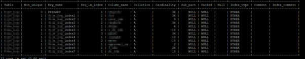 11. Index_type : 인덱스가 어떤 형태로 구성되어 있는지 나타내며 MySQL은 대부분 Btree를 사용한다.