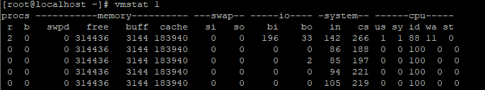 vmstat 는 리눅스의 프로세스, 메모리, 페이징, I/O 블럭, CPU 활동 사항들의 정보를 출력하는 기능을 합니다.