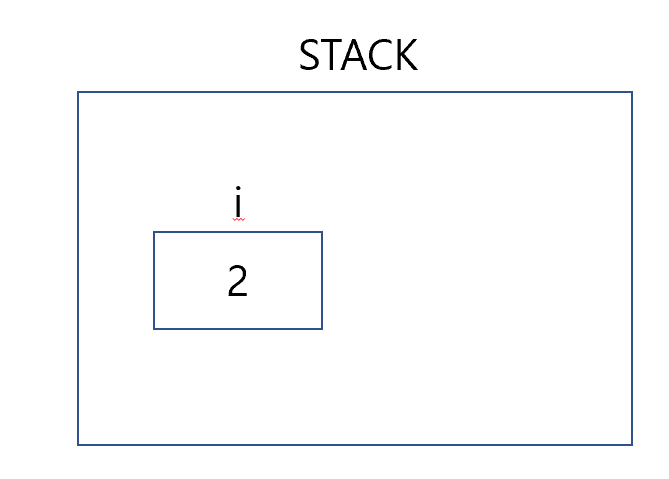 이때 숫자 2는 선언한 변수에 실제 값을 저장할 수 있고 stack에 저장이 가능하다.