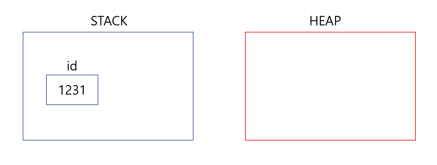 참조형 변수외에 기본형 변수는 메모리 구조 중 stack에 실제값이 들어간다.