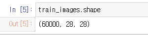 예제로 mnist 데이터의 형태를 보면 28 X 28 이미지가 60,000개가 있는 3차원 데이터로 되어 있다. (색깔이 추가되면 4차원 가능)