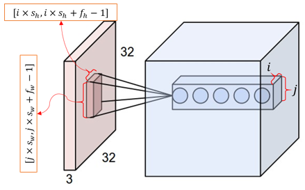 그럼 output으로 32개의 채널이 나오게 되며 아래의 그림처럼 입체적인 형태로 출력된다. 즉, Conv2D(64, (3, 3) 인 경우에는 64개의 다른 필터로 합성곱을 구하게 되므로 32개의 채널보다 긴 64개의 채널로 Output이 출력되게 된다.