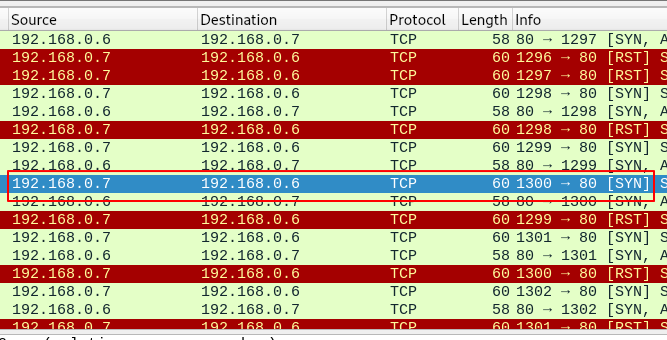 마지막 Else 와이어샤크를 보면 Victim으로 부터 받은 Syn/Ack 패킷을 볼 수 있고 이에 대해 RST 패킷을 전송하는 것을 확인할 수 있습니다.