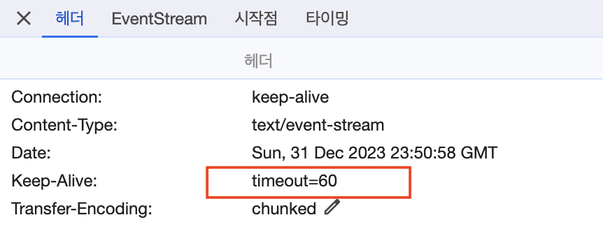 가장 먼저 클라이언트의 요청에 따라 서버에서는 통신 객체인 SseEmitter를 생성한다. 생성할때 만료 시간을 입력할 수 있다. 만료 시간이 너무 길면 연결 관리를 해줘야하고 짧으면 재연결 요청이 잦게 일어나므로 적절하게 설정 해야한다.
