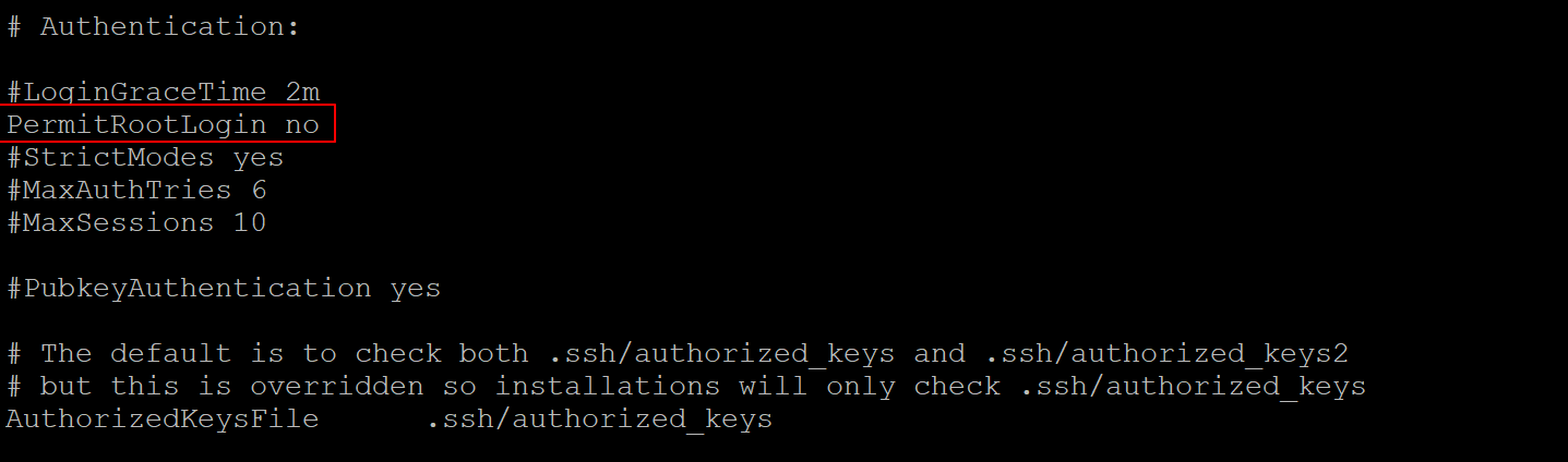 Root 계정으로 원격 접속을 차단하기 위해 /etc/ssh/sshd_config 에서 PermitRootLogin 옵션을 NO로 변경해주어야 한다.