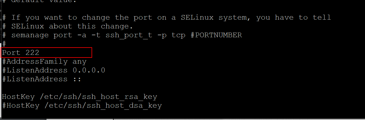 또는 SSH 포트를 변경하는 것도 대안 중의 하나이다. 포트를 222로 변경하면 기본적인 SSH 22번 포트의 공격을 받지 않게된다.