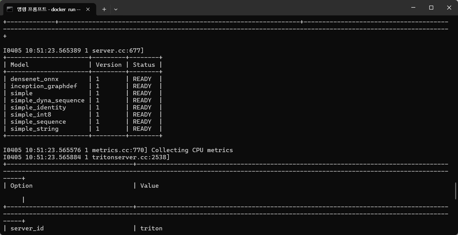 먼저 아래의 명령어를 사용하여 triton 도커 서버를 올려보자.